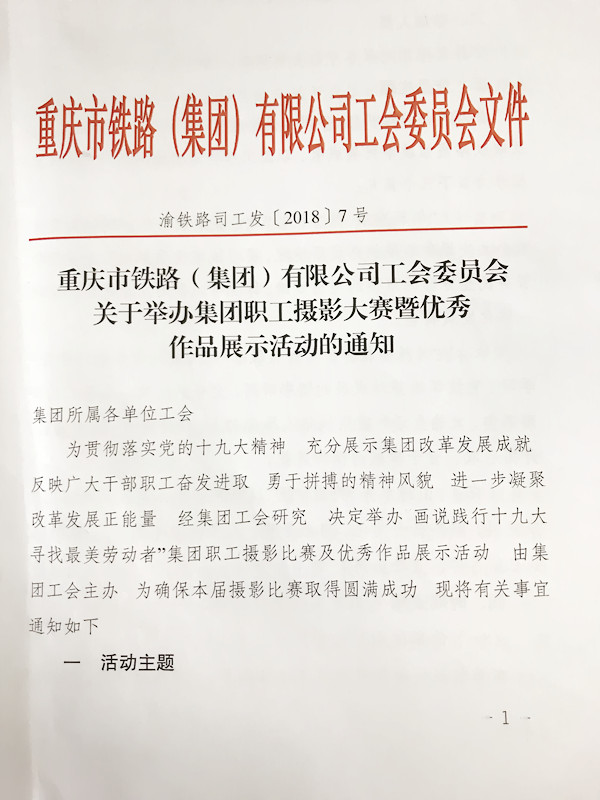 為貫徹落實黨的十九大精神充分展示集團改革發(fā)展成就反映廣大干部職工奮發(fā)進取、勇于拼搏的精神風(fēng)貌市鐵路集團工會擬于近期舉辦“畫說踐行十九大尋找最美勞動者”職工攝影比賽